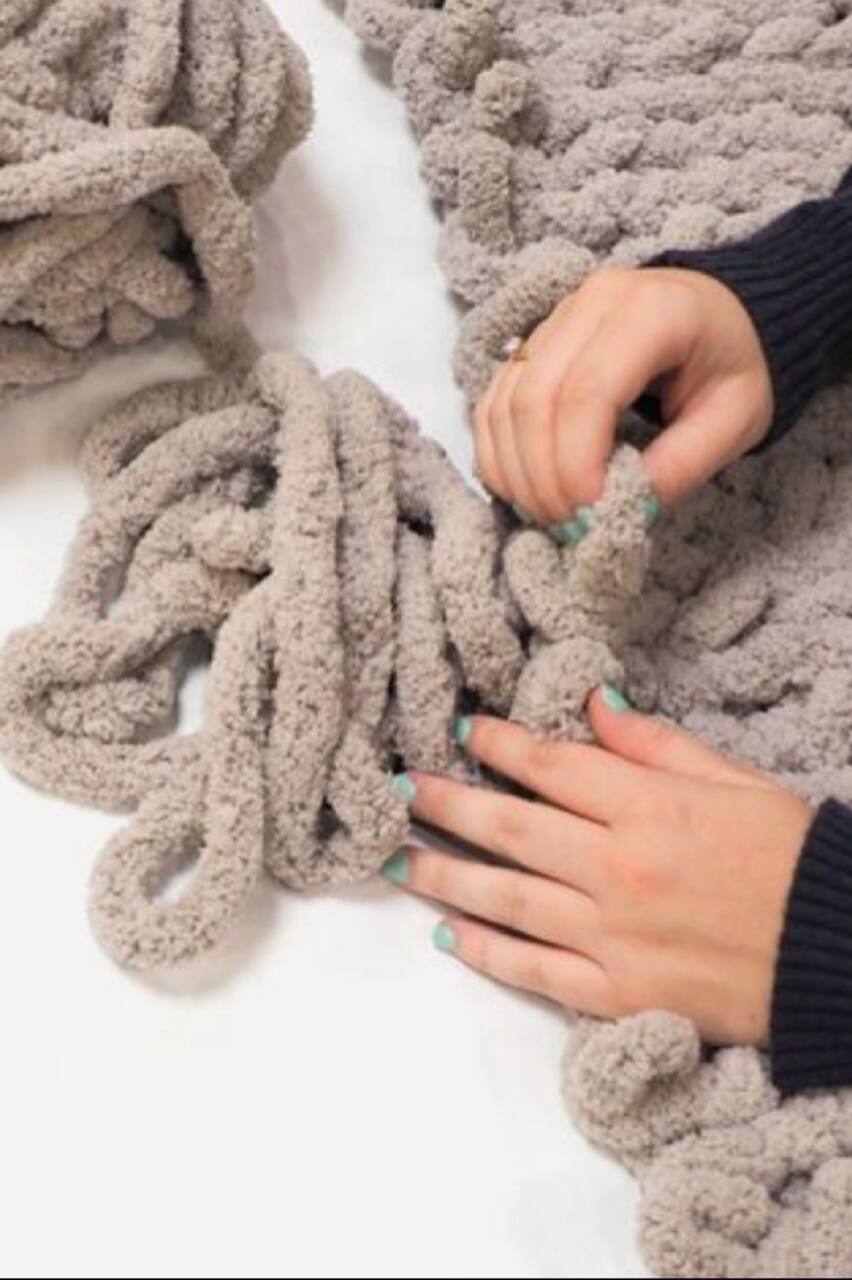 To make this simple striped knit blanket you will need 14 skeins of vannas choice yarn. I held two skeins together at once to make sure my blanket was extra cozy and i wanted a chunky knit blanket feelyou could also try it with one skein at a time but you would need to use smaller knitting needles to make it work. Be sure to slip the first stitch in each row move it from one arm to the other without knitting it this creates a nice smooth edge on your blanket. Youll know how many stitches to cast on either from swatching or from a pattern.