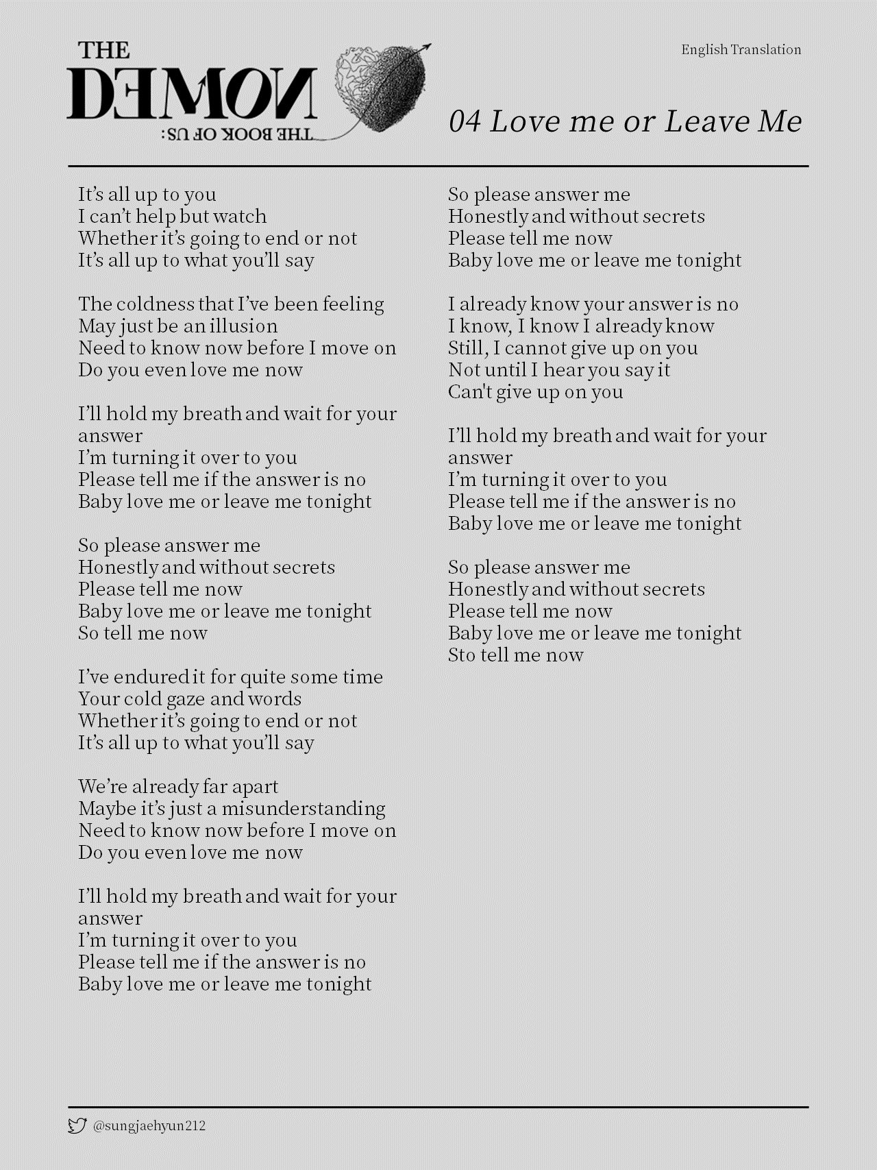 Day6 love me or leave me romanized lyrics. Rock all rights administered by jyp entertainment officia. Being next to you im sorry. Afraid is new song sung by kpop group day6 on 6th mini album the book of us.